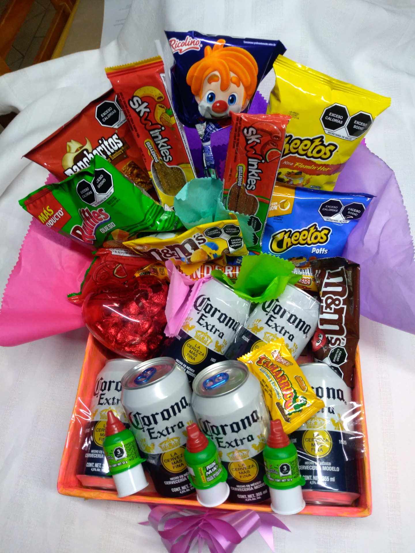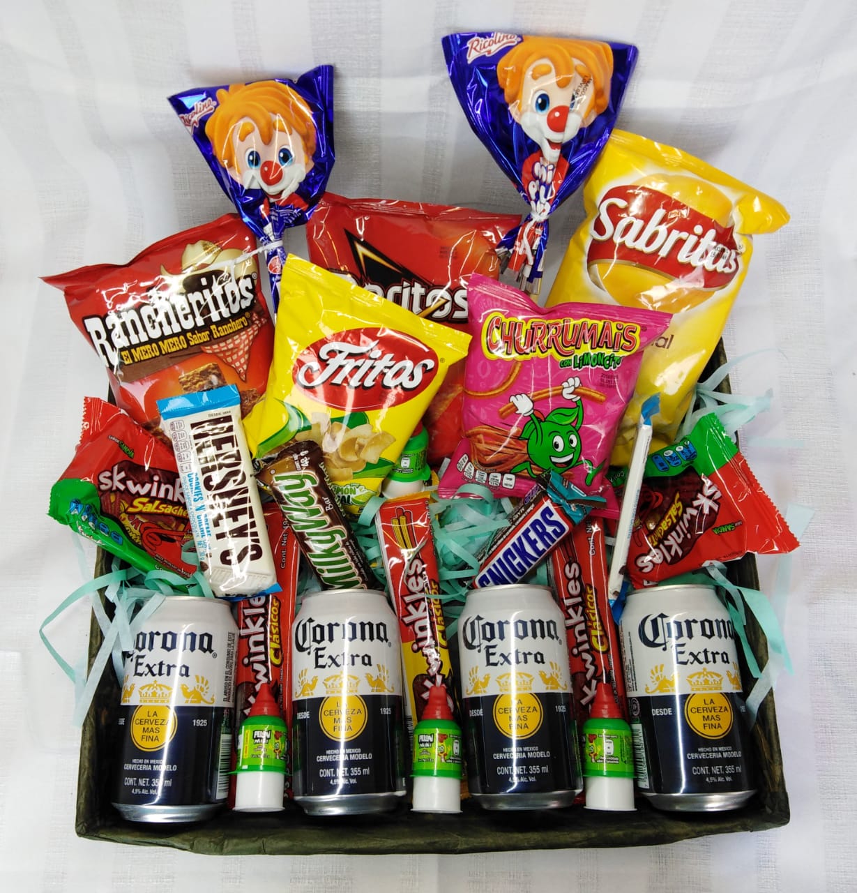 Delicioso arreglo botanero (saladitos, chilositos y dulces)
