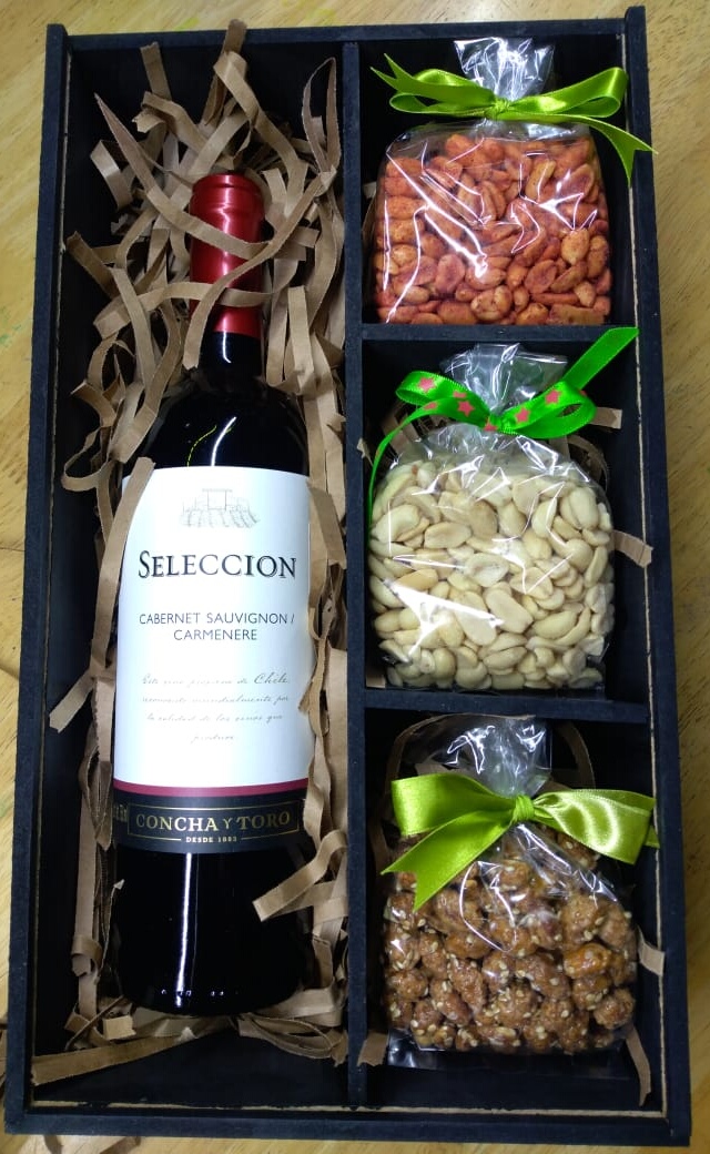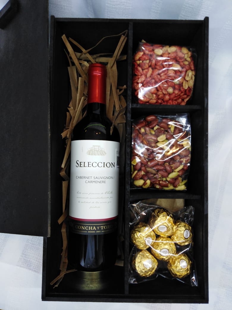 1 delicioso tinto chileno de selección, 3 distintas botanas selectas que puedes escoger a tu gusto: