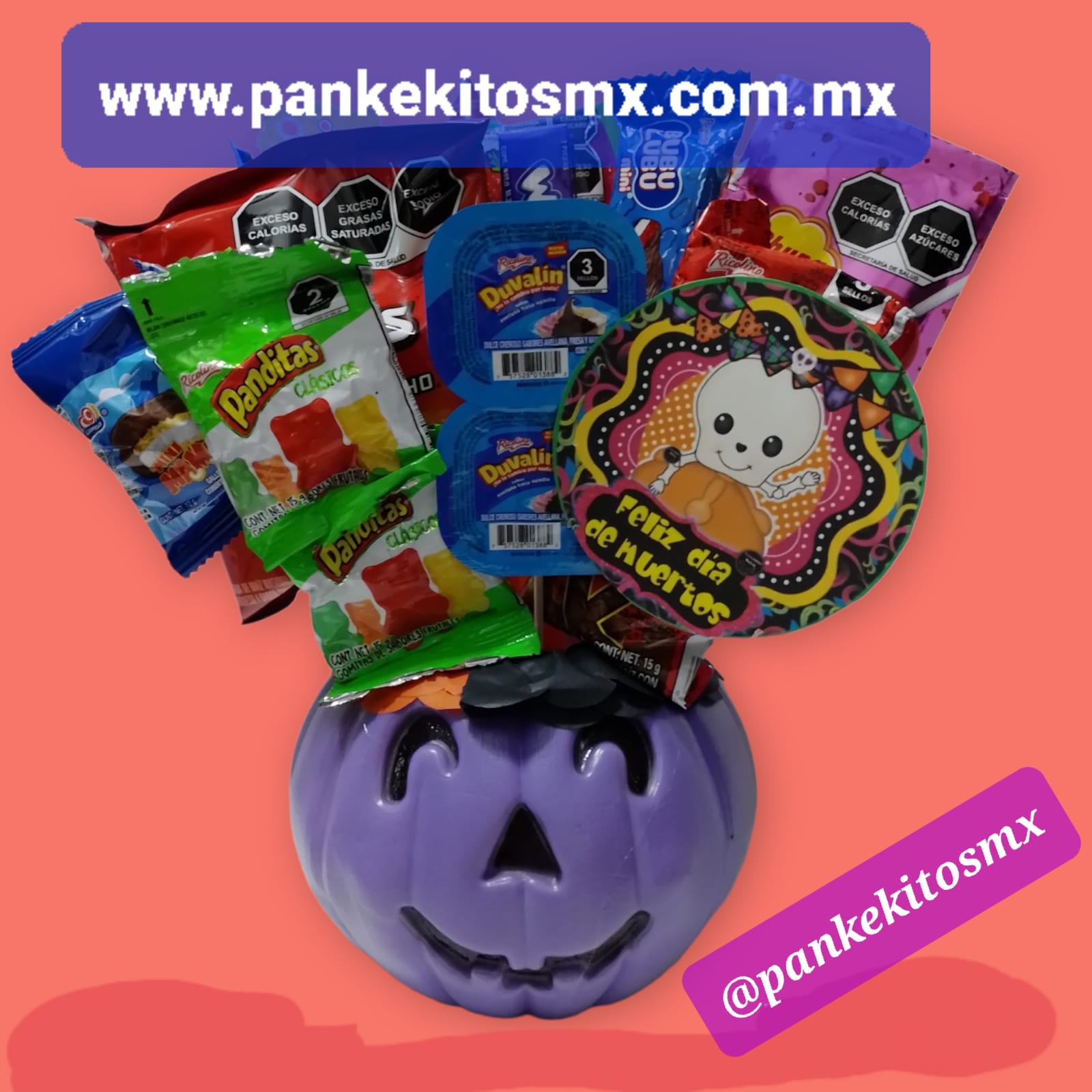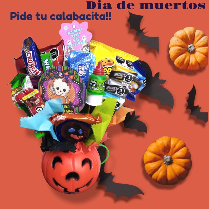 La clásica calabacita para pedir tu calaverita este día de muertos o Halloween, pero ya incluye dulces !! Y lo puedes pedir cualquier dia del año !!! Padrísimo no ??