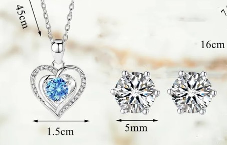 de rosas eternas, 1 collar con colgante de cristal en forma de corazón azul, 1